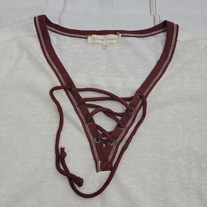 This amazing size Small Womens lace up long sleeved top is perfect for a wi term day with a vest or that spring or fall day alone! The cream and ruse colors will go with about anything in your closet! The top is in great condition!