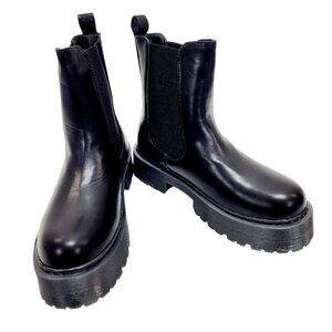 WOMENS Black Platform Chelsea Slip on Chunky Ankle Boots Size 10