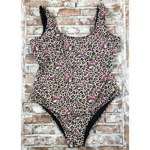 WOMEN'S Bucee's One Piece Swimsuit Leopard Print Beaver Womens SZ SM SWIM BEACH