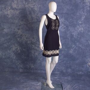WOMENS CALYPSO ST. BARTH NAVY SLEEVELESS BEADED EYELET DRESS SZ M