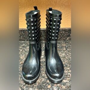 STUDDED RAIN BOOTS Size 6 Durable black rain boots with textured sole. Ideal for wet conditions.