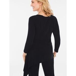 WOMEN'S CHICO'S TRAVELERS SOLID BLACK 3/4 SLEEVE ASYMMETRICAL HEM TOP SIZE 3 XL