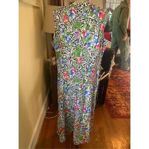 WOMEN'S CHOICES BLACK/WHITE/GREEN FLORAL Dress. 100% linen. NWOT size large