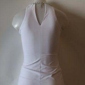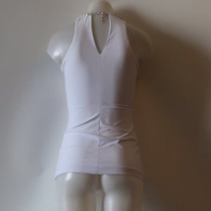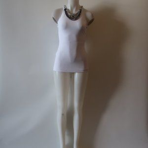 WOMENS CHRISTINA MAKOWSKY WHITE SILVER-TONED JEWELED NECK TOP XS *