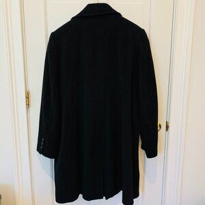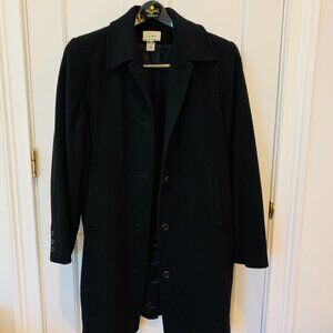 WOMEN'S CLASSIC LL BEAN BLACK WOOL LONG OVER COAT PEA COAT SIZE L - EUC