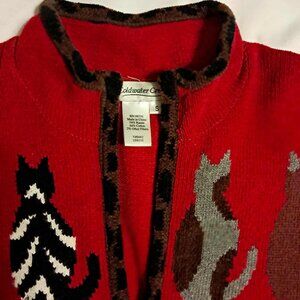 WOMENS COLDWATER CREEK RED LEOPARD TRIM CAT SWEATER CARDIGAN SMALL