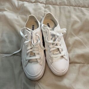 SIZE 7- LOW TOP SNEAKERS. ONLY WORN ONCE! ONLY FOR A FFEW HOURS, I WAS PART OF A WEDDING. THESE WERE VERY COMFORTABLE. FOR SALE, NOT MY STYLE, I PREFER VANS SLIP ONS. PERFECT FOR A BEACH DAY OR A FALL DAY, ANYWHERE!