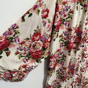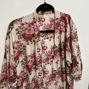 WOMENS Cream Pink Rose Floral Kimono Open Front Cardigan Topper Boho Hippie