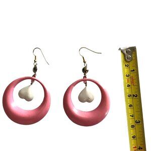 Add a touch of feminine charm to your look with these Women's Dangle Pink Tone with White Center Heart Earrings. This unknown brand delivers both style and quality in a lovely pink and white color scheme.