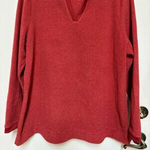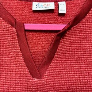 WOMENS D&CO RED V-NECK TERRY LONG SLEEVE TOP. SZ. XL