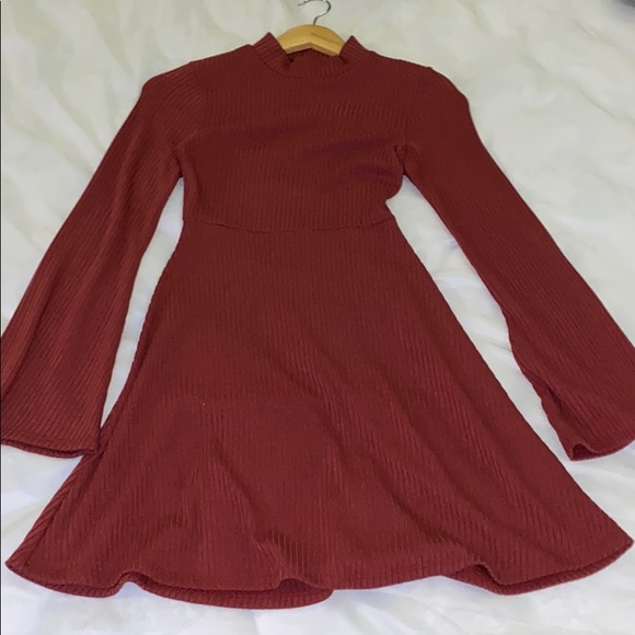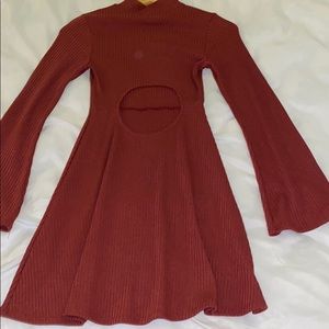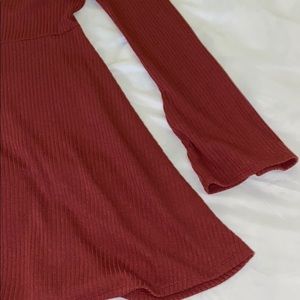 Burgundy colored flared out dress! Has an opening in the back and a bit of a turtle neck as well! ONLY WORN ONCE, in good conditions!