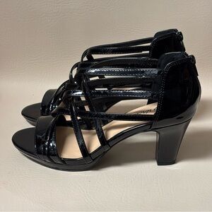 Elegance at its finest, the Bee by Easy Street is designed with our most popular sliver platform. The contemporary strappy vamp design. This style will give you the confidence as you take on your day in fashion! With a convenient back zipper, gored strap and padded sock to ensure comfort and style all in one.