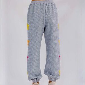 WOMEN'S ELASTIC WAIST FRONT POCKET SEQUINS STARS DETAILED SWEATPANTS Large