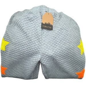 Elastic waist for comfort, sequin star details for a touch of glamour, front pockets, relaxed fit perfect for layering, high-quality polyester blend for durability