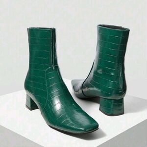 WOMEN'S FASHION BUSINESS CASUAL SIMPLE SQUARE TOE ALLIGATOR PATTERN Ankle Boots