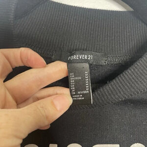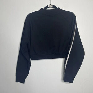 WOMENS FOREVER 21 BLACK NASA SILVER REFLECTIVE CROPPED MOCK NECK SWEATSHIRT - M