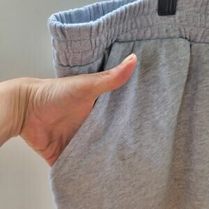 These Women's Gray High Waisted Knit Shorts by Old Navy in size XX-Large are perfect for activewear. The pull-on closure and relaxed fit make them comfortable for any occasion. Made of machine washable knit fabric, these shorts are a stylish addition to any wardrobe, with a 17" rise and 4.5" inseam. The solid gray color and flat front design give them a modern and versatile look, ideal for all seasons. Perfect for a casual day out or a workout session, these shorts are a must-have for any woman's closet.