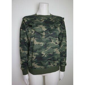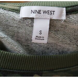 WOMEN'S GREEN CAMO CAMOUFLAGE CREW NECK SWEATSHIRT TOP - NINE WEST - SIZE S NWT