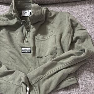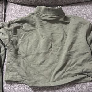 Stylish and comfortable olive green cropped top with a half-zip design. Perfect for casual outings.