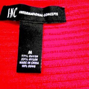 WOMEN'S RED LONG SLEEVE TOP BY INC International Concepts. Scoop Neckline. Size M. Exposed Gold Ring Pull Zipper Front Closure. 77% Rayon, 23% Nylon Produces a Ribbed Comfortable Stretch Fabric Making This Garment Packable For Travel, Easy to Wear to Office, Dinner, or other Dressy or Casual Events During Winter, Fall and Spring. Pre-Owned. Excellent Condition.
