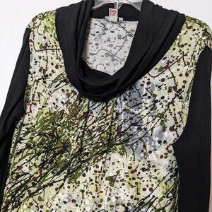 WOMEN'S "ISLE" Black & Green "Paint Spatter Look" Cowl Neck, Knit Dress; Size M
