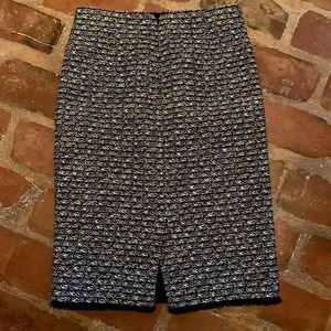 WOMENS J Crew Pencil Skirt Black White Tweed or Boucle Skirt Raw Hem SIZE 2