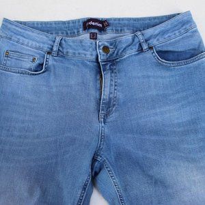 WOMENS JEANS SIZE 12 IT'S DENIM BLUE JEANS TAPERED LEGS STRETCH BELOW WAIST