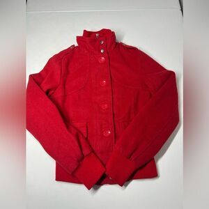 WOMENS JUNIORS SOUND & MATTER BASIC WOOL BLEND JACKET RED W/ BUTTONS SIZE XS