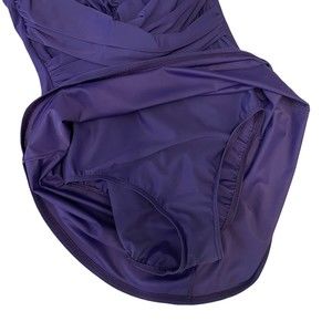 WOMENS LANDS' END PURPLE SURPLICE WRAP ONE PIECE SWIMSUIT DRESS SIZE 10
