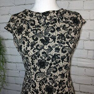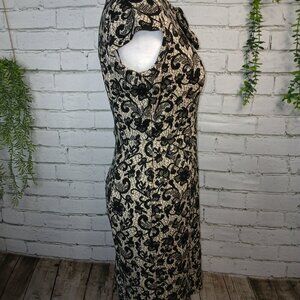WOMENS LENNIE FOR NINA, NINA LEONARD BROCADE PRINT DRESS, TAN AND BLACK, SIZE 4P