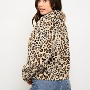 WOMEN'S LEOPARD PRINT FAUX FUR PULLOVER SWEATER