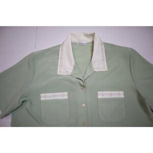 WOMEN'S LIGHT GREEN SILKY TEXTURED BUTTON-UP BLOUSE - BERKERTEX - SIZE 16
