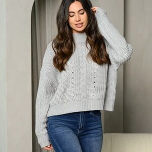 WOMEN'S LONG SLEEVE MOCK NECK KNIT SWEATER | SIZE: S-M-L