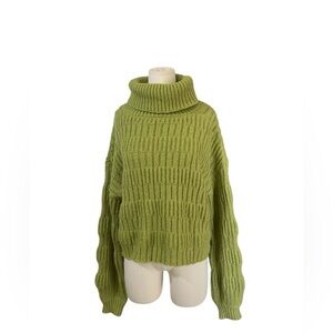 Stay warm and stylish with this cozy green turtleneck sweater. Perfect for any casual outing.