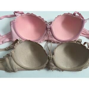 WOMEN'S LOT OF 2 BRA NWT SIZE 36C PINK BEIGE ADJUSTABLE & REMOVABLE STRAPS AND HALTER STRING