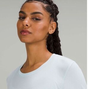 Women's Lululemon Swiftly Tech Relaxed Fit in light blue. Shirt is 2 bars converting to a size 10 according to their size bar conversion chart. In good condition. No apparent flaws or damage.