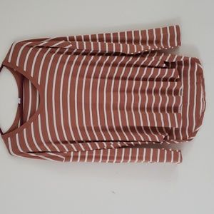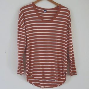 WOMEN'S LUXE Clay/Caramel STRIPE TUNIC T-SHIRT Super soft, long-sleeve, Size M
