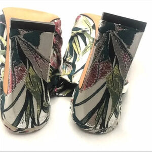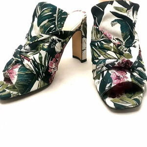 WOMEN'S MARC FISHER "HOGAN" GREEN & PINK FLORAL PRINT SLIDE SQUARE TOE HEELS 7
