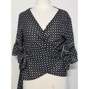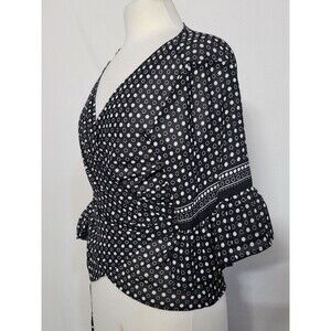 WOMENS MAX STUDIO BLACK/WHITE DOTTED WRAP STYLE BLOUSE SIZE SMALL NWT