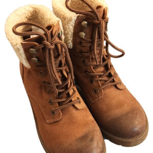 WOMENS Mossimo lace up brown sherpa boots size 8.