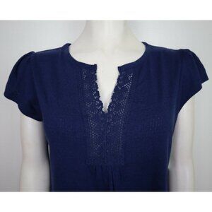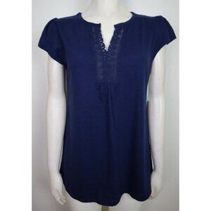 WOMEN'S NAVY BLUE SHORT SLEEVE PAJAMA TOP - EARTH ANGELS - SIZE S - NEW WITH TAG