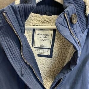 WOMENS NAVY BLUE ABERCROMBIE SHERPA FUR LINED PARKA JACKET M winter coat hood