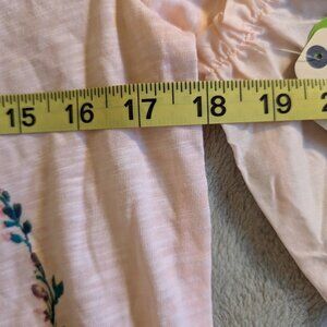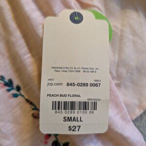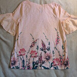 WOMEN'S NEW TOP St Johns Bay Shirt S Small T Tee Short Ruffle Peach Bud Floral