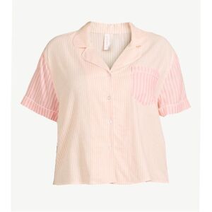 WOMEN’S NOTCH Collar Cotton Pajama Short Sleeve Button Down Lounge Shirt Size M