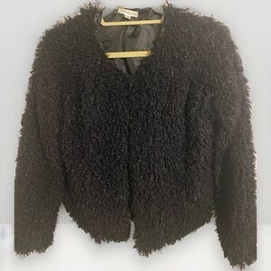 WOMEN'S OPHELIA ROE BLACK FUZZY Faux FUR TOPPER JACKET SIZE Medium