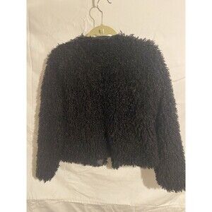 WOMEN'S OPHELIA ROE BLACK FUZZY Faux FUR TOPPER JACKET SIZE Medium. Condition is Pre-owned. Shipped with USPS Ground Advantage.