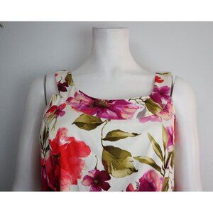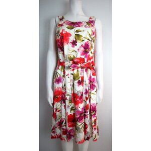 WOMEN'S PINK & IVORY FLORAL PRINT FIT & FLARE DRESS - SANDRA DARREN - SIZE 10