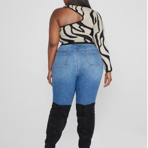 NWT Fashion To Figure Mia One Shoulder Tiger Print Intarsia cropped sweater in size 3X. See below for general measurements to ensure fit (all measurements taken on the flat, multiply by 2 for total circumference)