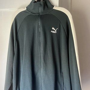 This PUMA branded jacket is perfect for those who love sports and want to make a statement while they work out. It comes with tags and is in perfect condition. The jacket is designed to be a basic jacket with a sporty twist. Get your hands on this striped sports jacket and elevate your workout wardrobe today.