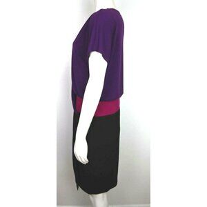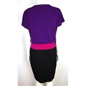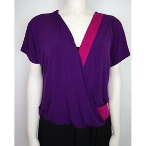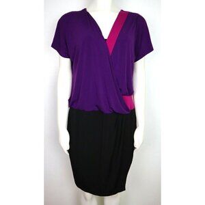WOMEN'S PURPLE & BLACK WRAP TOP STRETCH KNIT DRESS - MAGGY LONDON - SIZE 8
